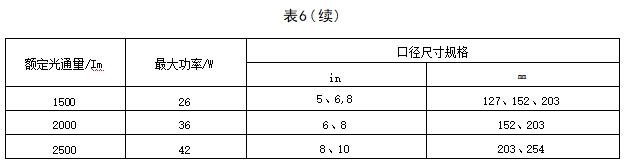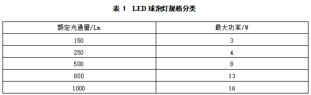 5.1.3 LED球泡灯规格根据额定光通量宜按表1分类。