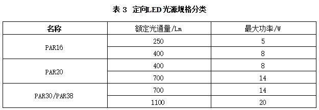 5.1.5 定向LED 光源规格根据额定光通量宜按表3分类。