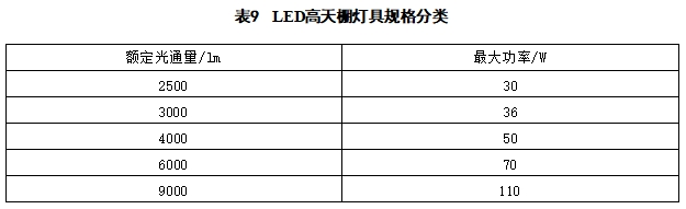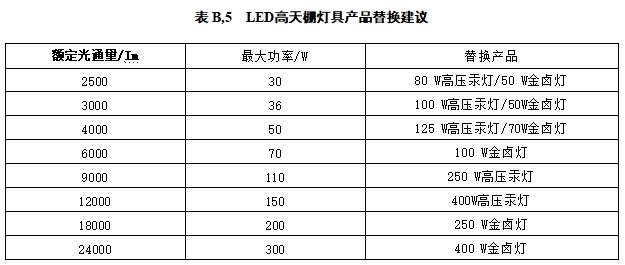 B.2.4 LED高天棚灯具替换传统照明产品宜符合表B.5 的规定。