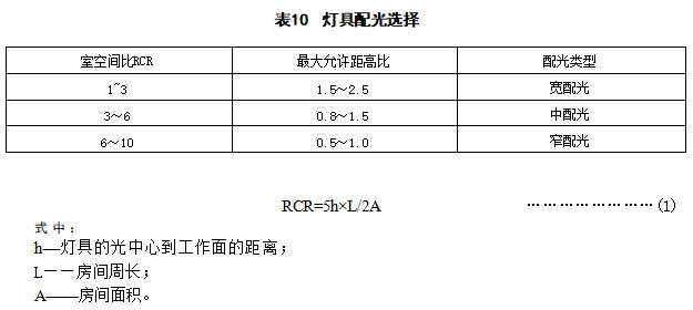 6.1.2 LED灯具的配光宜符合表10的规定。室空间比应按式(1)计算。