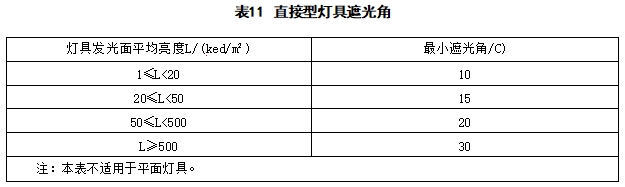 A,4.1 直接型LED 灯具遮光角和发光面亮度应符合表11的规定。