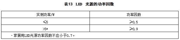 6.2.1 LED光源的功率因数应符合表13的规定。