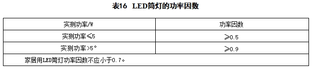 a)LED 筒灯的功率因数应符合表16的规定。