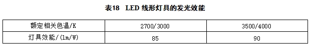 6.3.3 LED线形灯具的发光效能不应低于表18的规定。