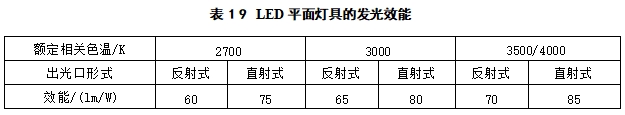 a)LED平面灯具的发光效能不应低于表19的规定。