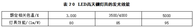 6.3.5 LED高天棚灯具的发光效能不应低于表20的规定。
