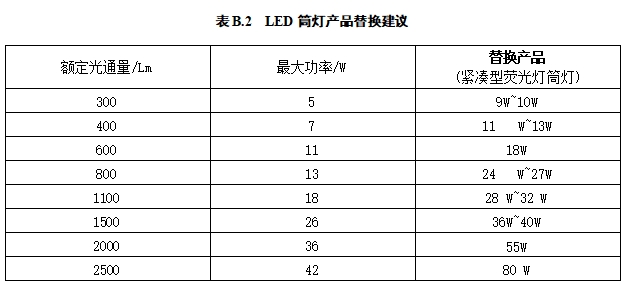 B.2.1 LED筒灯替换传统照明产品宜符合表B.2 的规定。