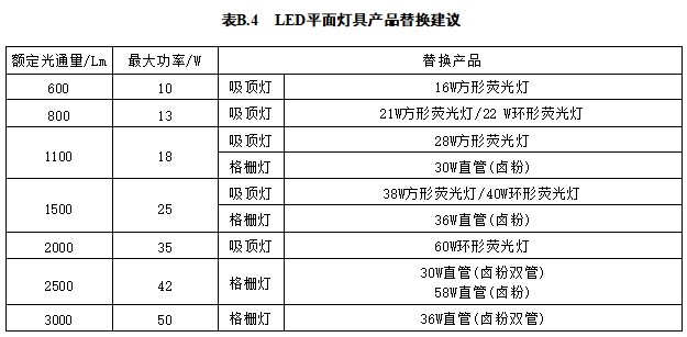 B.2.3 LED平面灯具替换传统照明产品宜符合表B.4 的规定。