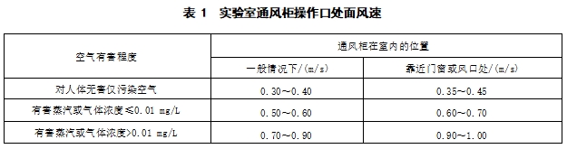 实验室通风柜操作口处的面风速,可按表1进行选取,对于特殊的有害气体应根据相关的使用数据 要求确定。