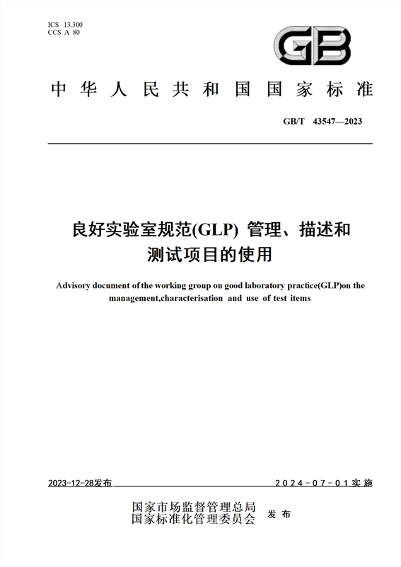 良好实验室规范(GLP) 管理、描述和 测试项目的使用